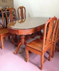 Bàn ăn gỗ gõ đỏ 6 ghế bàn tròn