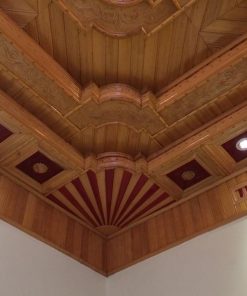 Hiện nay trên thị trường, trần gỗ tự nhiên được làm từ các loại gỗ phổ biến là : gỗ Giáng Hương, gỗ Pơ-mu, gỗ Lim, gỗ Xoan Đào, gỗ Gõ đỏ, gỗ Dổi, gỗ Thông và gỗ Sồi. Trong đó có gỗ Sồi, thường là gỗ Sồi Nga hoặc Sồi Mỹ là loại trần gỗ mới. Còn trần gỗ phổ biến được ưa chuộng hơn cả là trần gỗ Pơ-mu. Nhìn chung, trần gỗ tự nhiên đều là những sản phẩm cao cấp hàng đầu và được khách hàng tin tưởng lựa chọn. Trần gỗ tự nhiên với những ưu điểm vượt trội như bền chắc, chống chịu ẩm ướt, mối mọt tốt, vân gỗ đẹp, chống cháy, không bị phai màu…Hơn nữa, trần gỗ tự nhiên luôn mang đến cảm giác sang trọng và thân thiện với thiên nhiên cho không gian nội thất của căn phòng. Trần gỗ tự nhiên được sử dụng trong các căn phòng trang trọng, mang tính chất quây quần hay trang trọng như trần gỗ trong các phòng họp cao cấp, phòng hội nghị, trần gỗ cho phòng khách, trần gỗ biệt thự…Đa phần các loại trần gỗ tự nhiên dùng luôn gỗ làm hệ thống khung xương, mà thường là gỗ Lim bởi nó có độ cứng và bền cơ học rất cao. Tuy nhiên, cũng có nhiều đơn vị không sử dụng xương gỗ Lim vì cho rằng nó độc hơn…Hiện chưa có căn cứ chính xác, tuy nhiên tùy yêu cầu của khách hàng và có thể dựa theo yếu tố phong thủy đề lựa chọn trần gỗ cũng khung xương hợp lý cho quý gia chủ. Xin gửi đến quý khách một số hình ảnh về trần gỗ tự nhiên để các bạn tham khảo thêm.